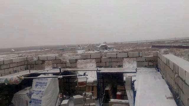 Зимняя кладка газоблоков в снегопад!